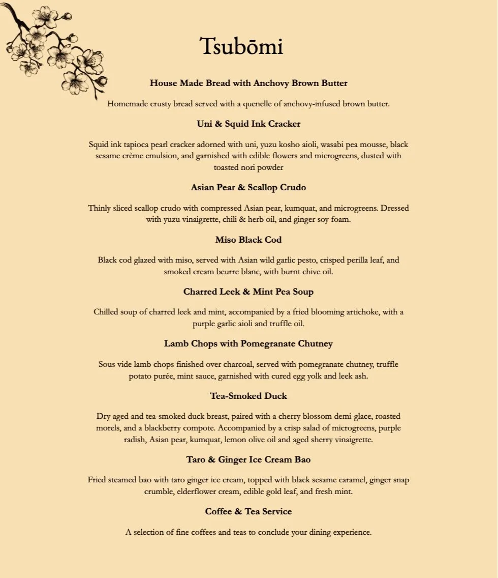 Tapioca Pearl Cracker, Uni, Yuzu Kosho Aioli, Wasabi Pea Mousse, Black Sesame Crème, Toasted Nori Powder.